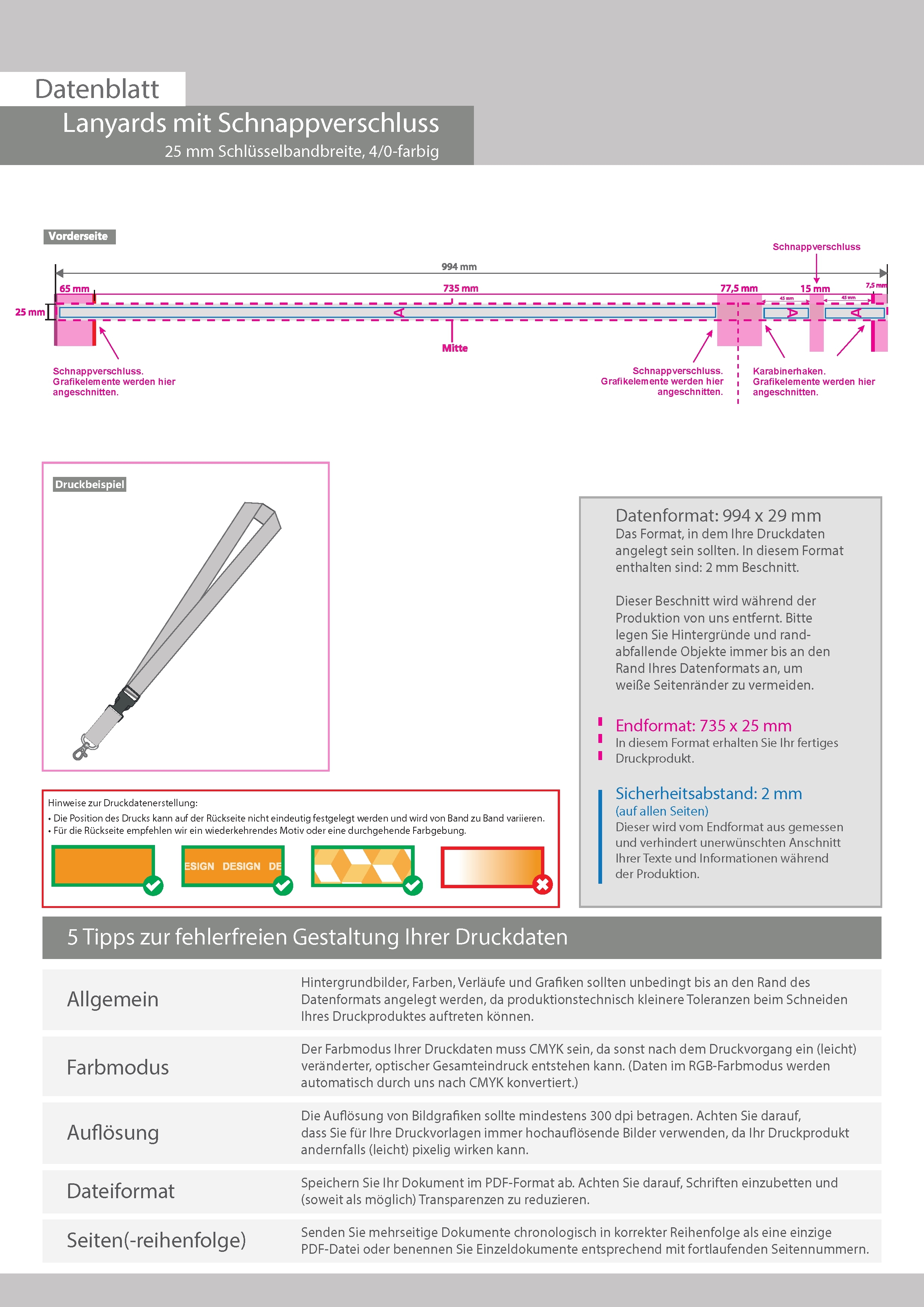 Lanyards mit Schnappverschluss, 25 mm Schlüsselbandbreite, 4/0-farbig einseitig bedruckt